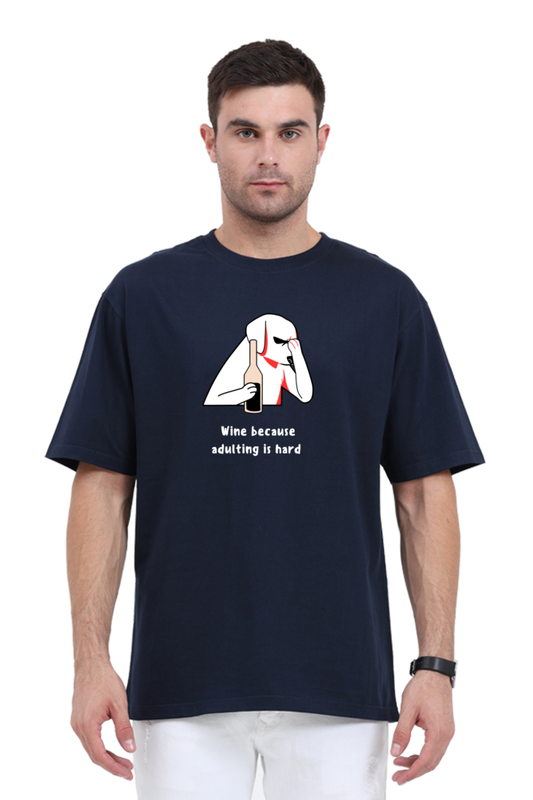 Wine because adulting is hard: Unisex Oversized Standard T-Shirt
